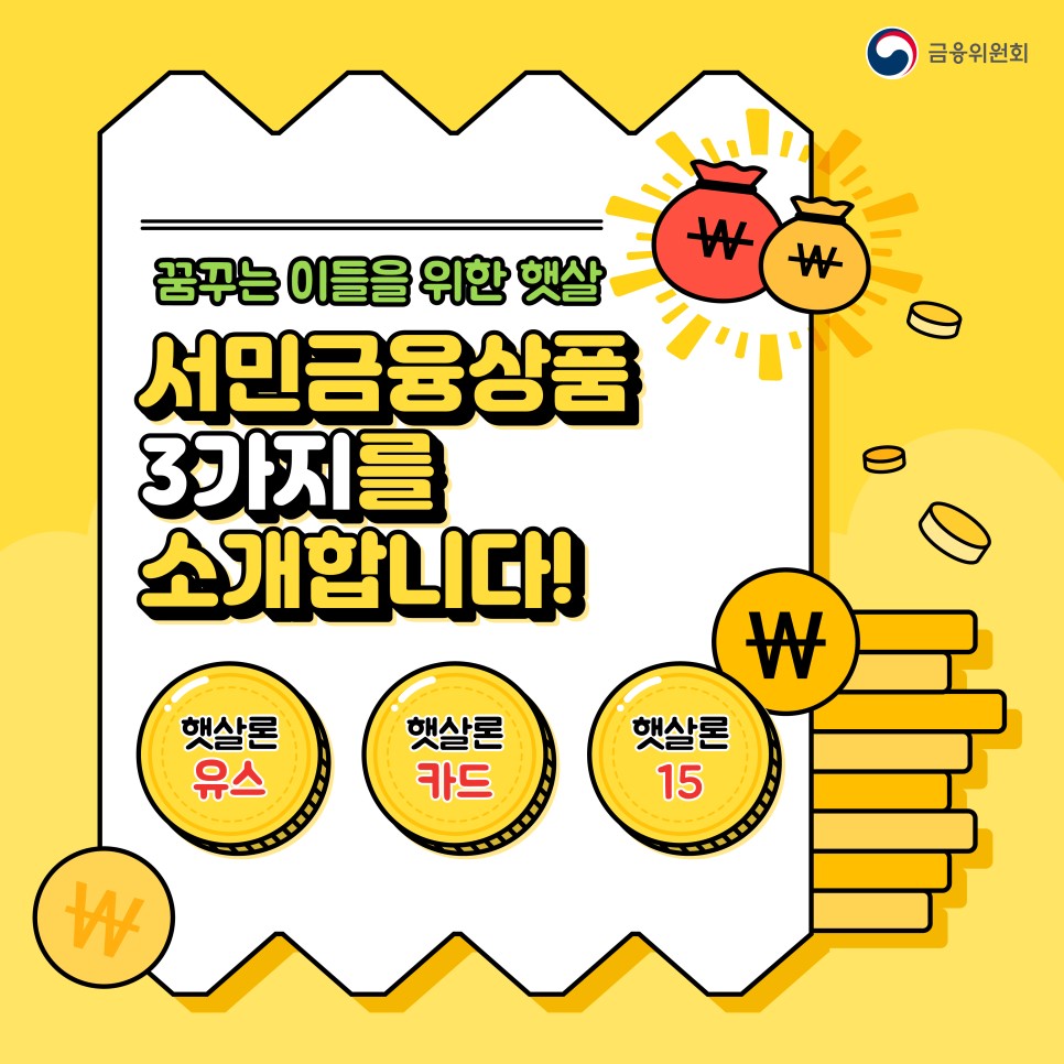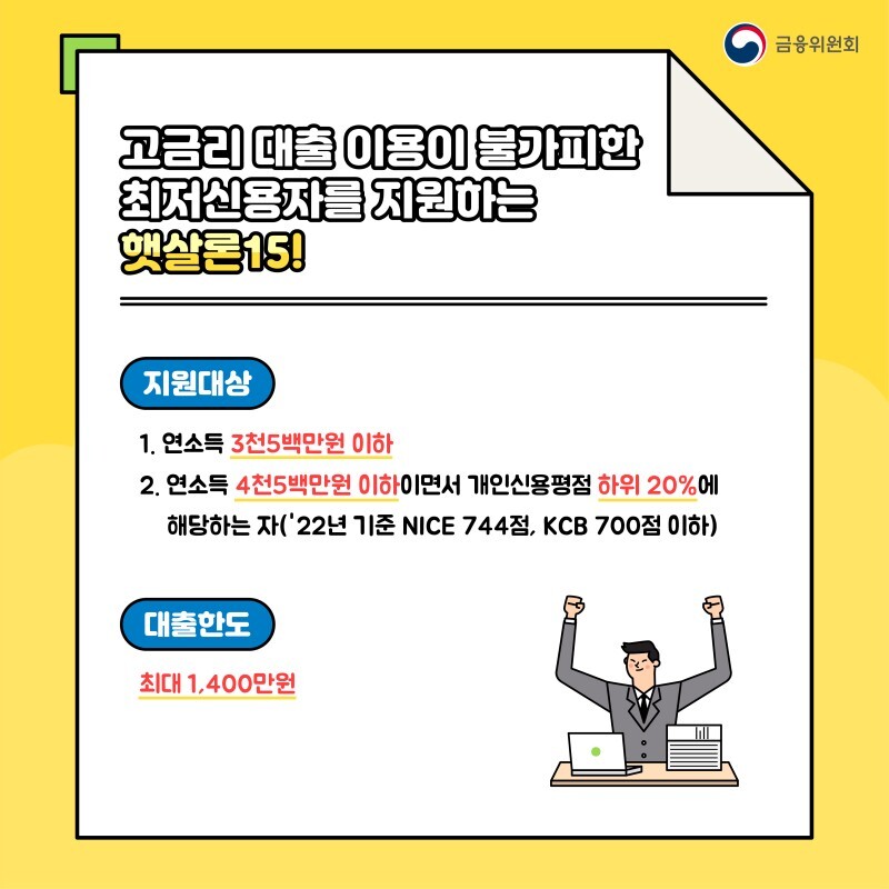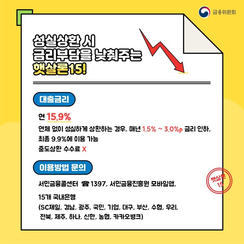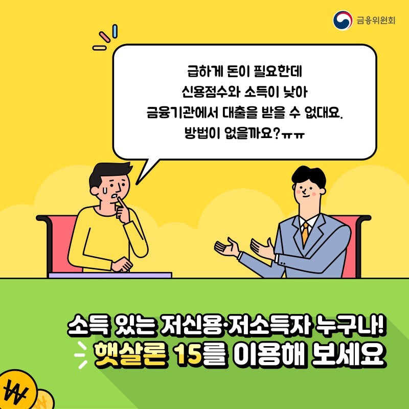 A.소득있는 저신용 저소득자 누구나! 햇살론 15를 이용해 보세요