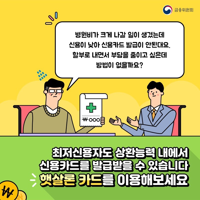 Q. 병원비가 크게 나갈일이 생겼는데 신용이 낮아 신용카드 발급이 안된대요