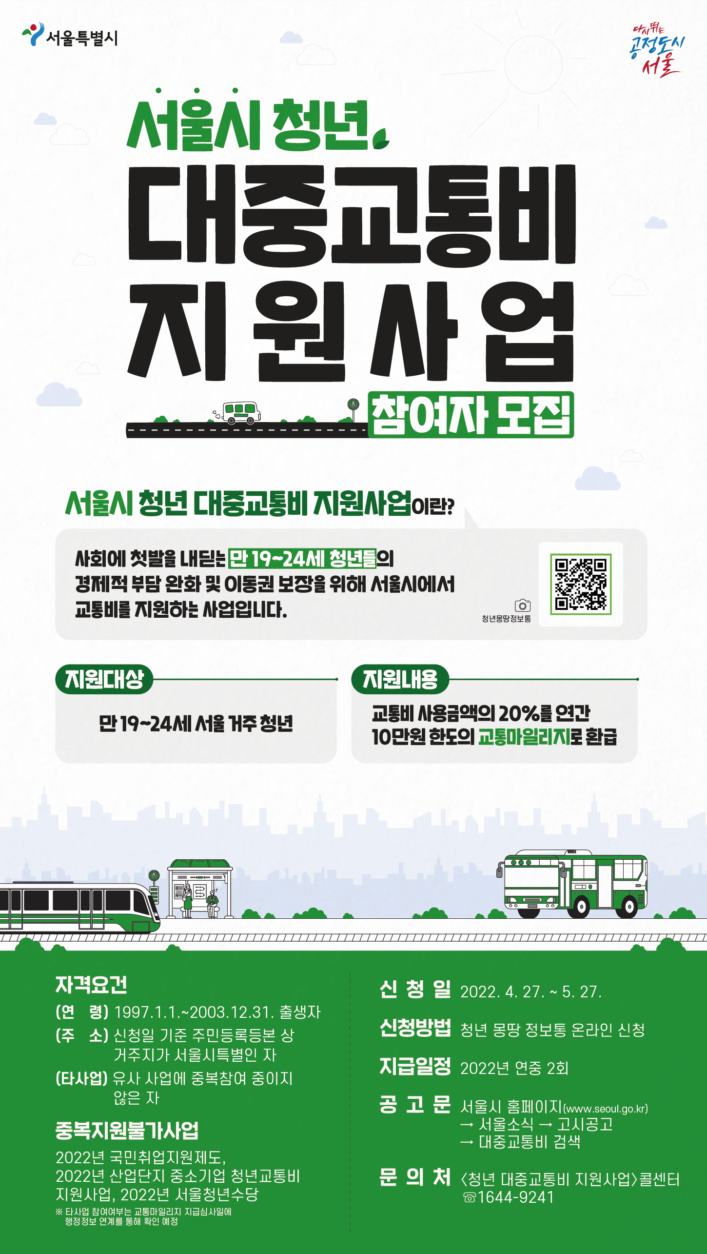 - 문의처 : 청년 대중교통비 지원사업 콜센터 1644-9241
